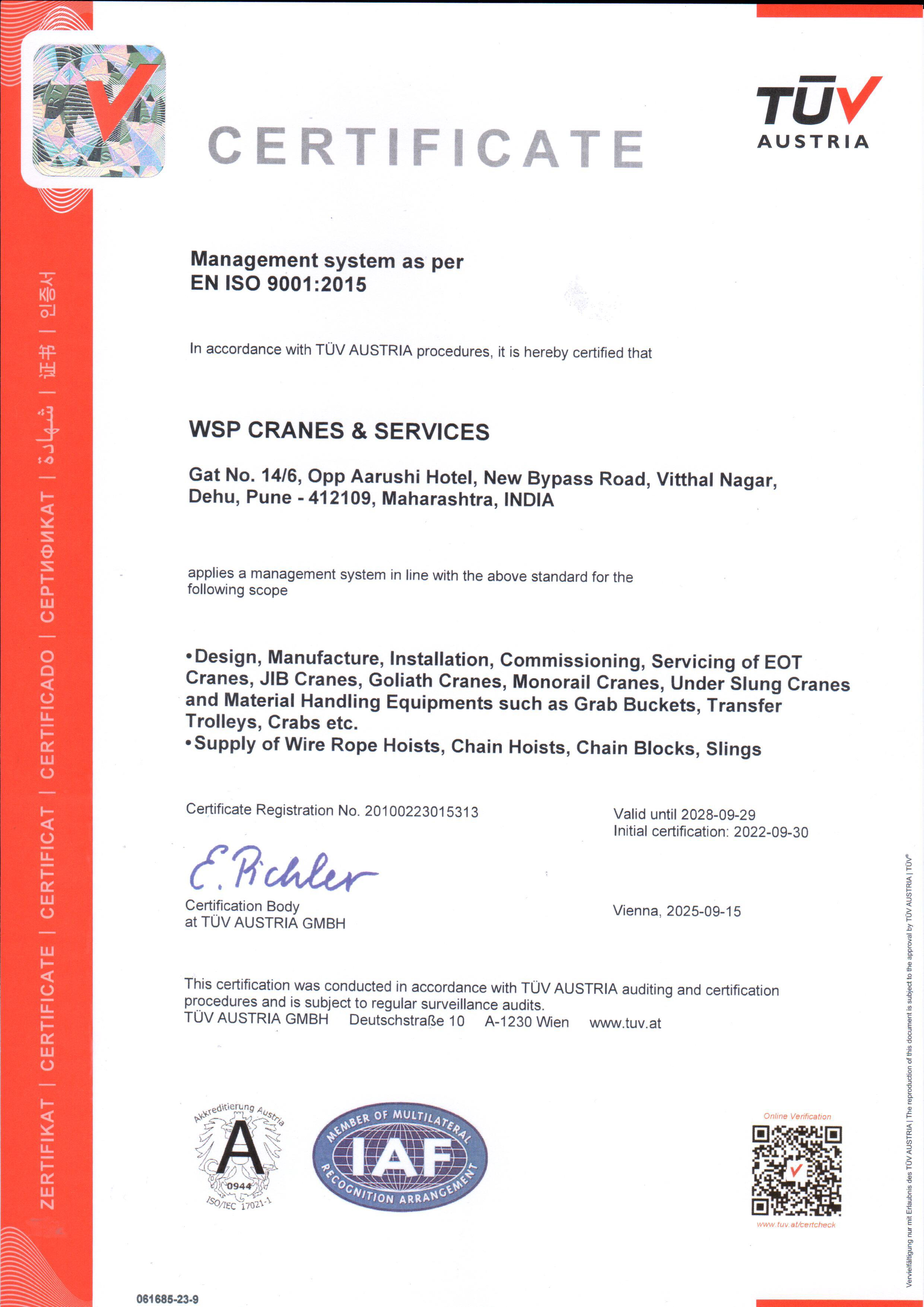 Through continuous technological upgrades, disciplined manufacturing practices, and skilled manpower, WSP Cranes and Services stands among India’s leading manufacturers of cranes and material handling equipment.